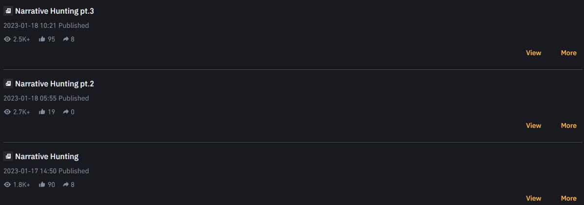 Binance FeedやTwitterなどのソーシャルメディアプラットフォームでのトレンドは、社会的な感情や全体的な「話題性」の重要な市場です。