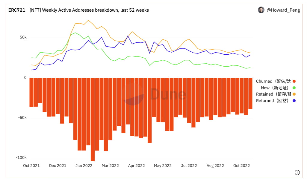 ご覧のとおり、この段階では週間アクティブ ユーザー数が急落しています。私たちは、NFT アプリケーションにおける新しいトレンドと新しいパラダイム シフトをただ待ち望んでいるだけだと断言できます。そうすれば、市場は回復するでしょう。