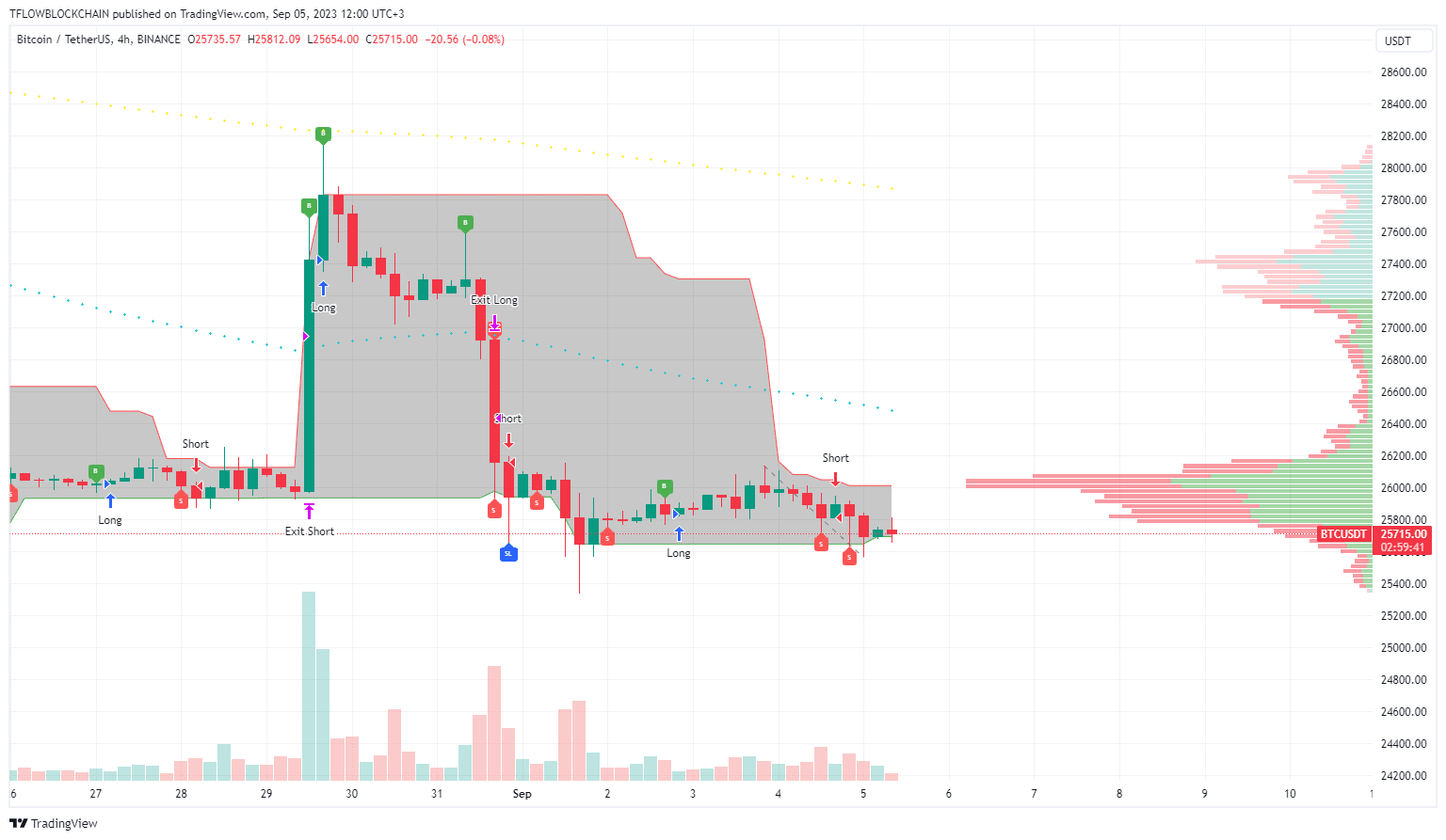 Monitor rynku 5 września 2023 r. Witamy wszystkich w dzisiejszym Monitorze rynku na 5 września 2023 r. Wspólnie analizujemy portfel 10 kryptowalut i handlujemy na żywo na platformie Binance Futures. Używamy silnika handlowego TFLOW na wykresie 4H. Całkowita kapitalizacja rynkowa wynosi 1,04 bln USD, dzienny wolumen wynosi 24 mld USD, dominacja BTC wynosi 48,3%, a indeks strachu i chciwości wynosi 40.