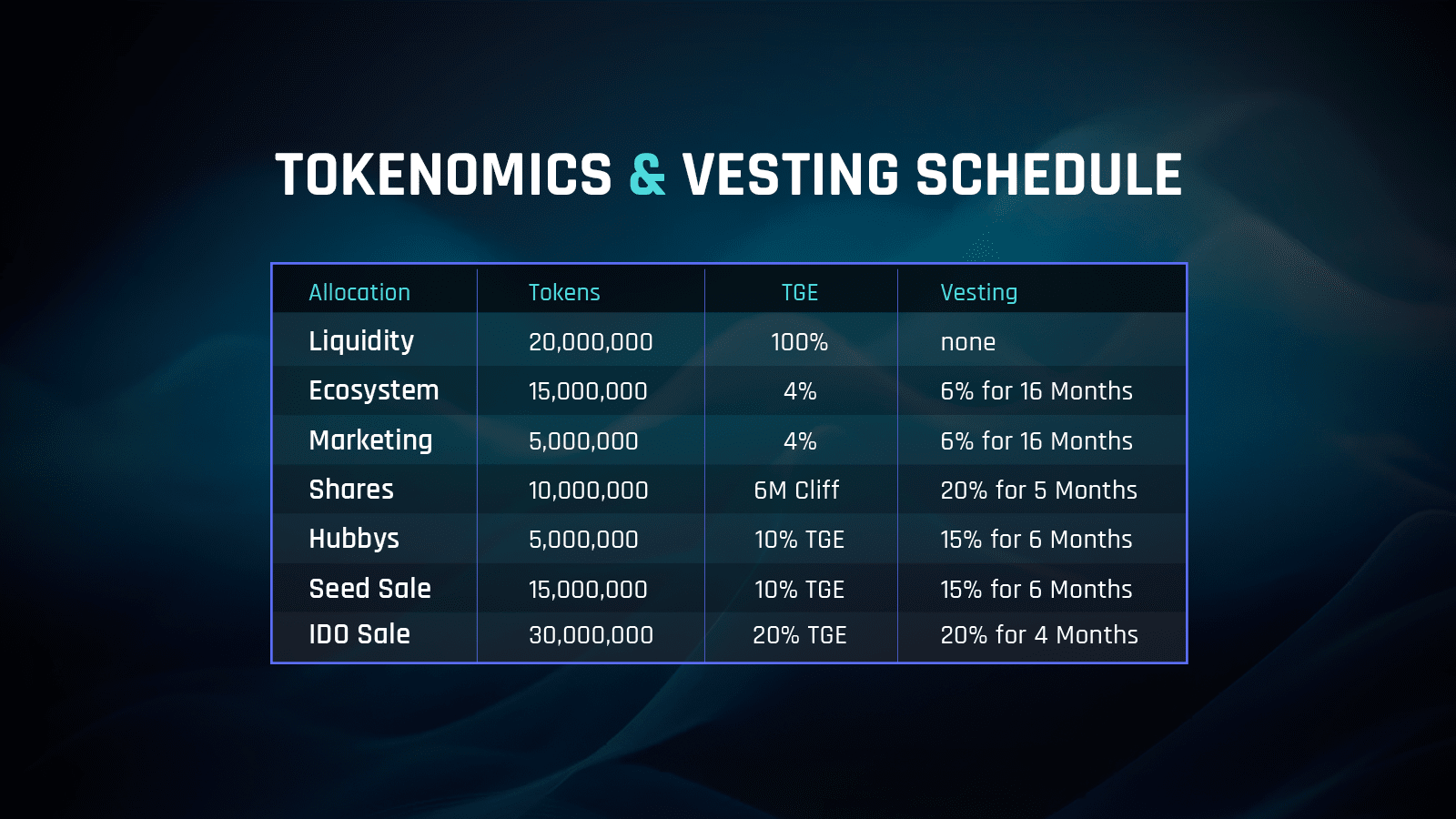 HUB to pierwszy token Stake to Own (S2O) na rynku, który działa jako DAO i służy do osiągnięcia rangi na platformie Crypto Hub. Poniżej dowiemy się nieco więcej o tokenomice HUB i harmonogramie nabywania uprawnień: