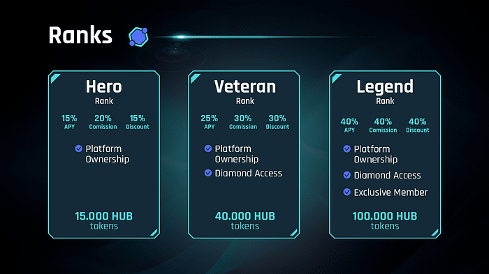 Oznacza to, że w momencie, gdy inwestorzy dokonają zakupu na Seed Sale, będą mieli natychmiastowe korzyści ze wszystkich ofert Crypto Hub Launchpad, zgodnie z ich rangami.