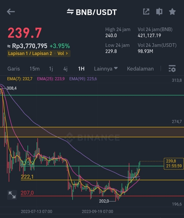 Po dość długim przelocie w bok, teraz $BNB jestem gotowy do wysokiego lotu. Możliwość taką widać, gdyż świeca dzienna BNB zamknęła się powyżej oporu, czyli na poziomie 235 dolarów.