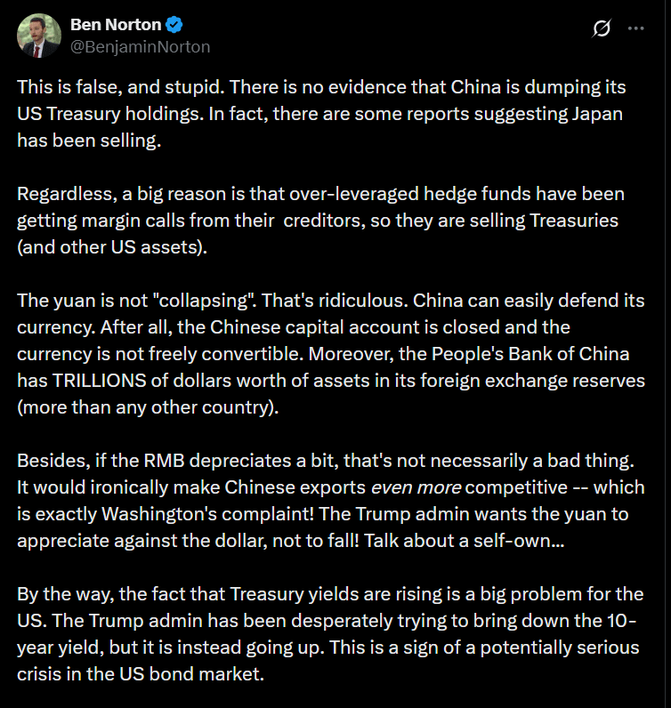 To nie jest w 100% potwierdzone, ale znaki są jasne — Chiny mogą używać swoich amerykańskich obligacji jak broni w tej wojnie finansowej.
