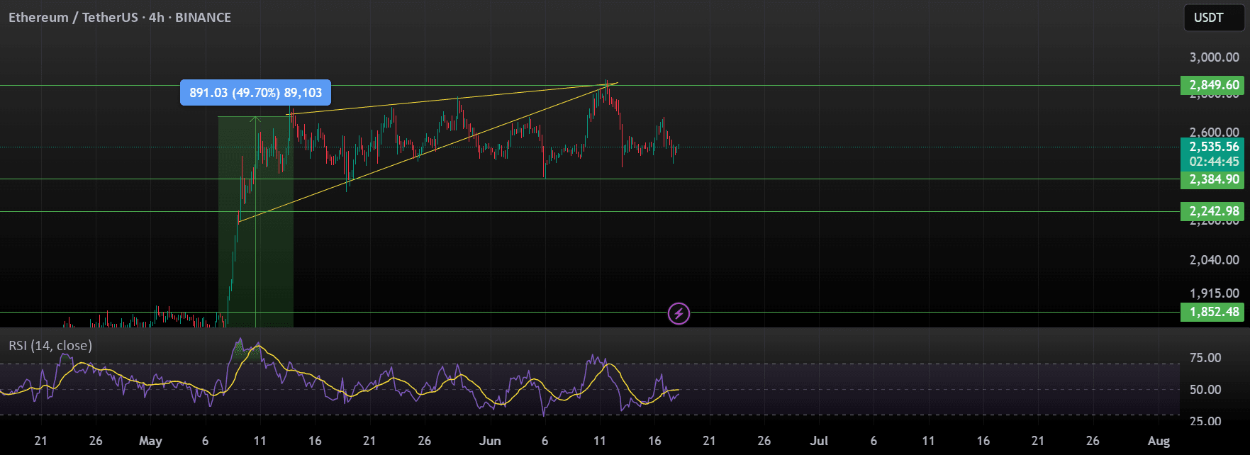 Aktualna cena: 2,537 USD, testuje lokalne wsparcie na poziomie 2,384.90 USD.