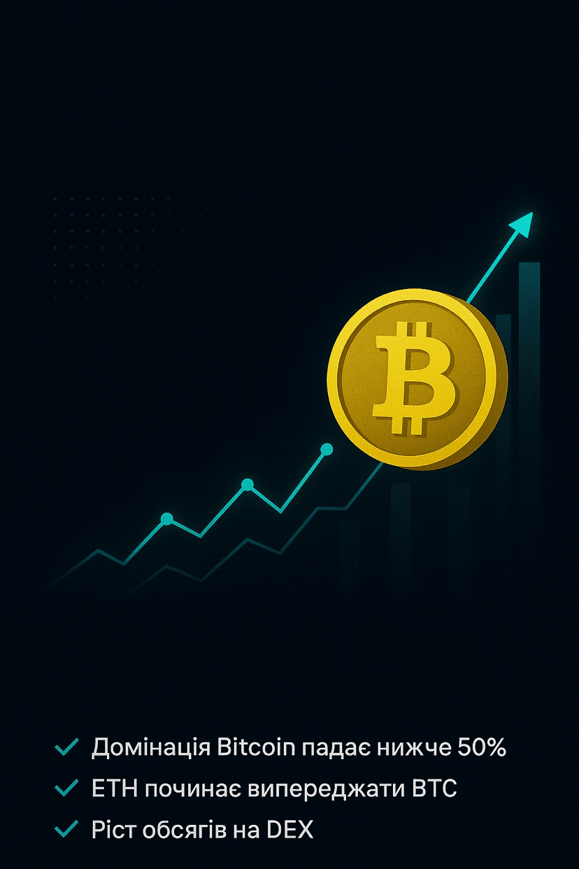 1. Dominacja Bitcoina spada poniżej 50%.