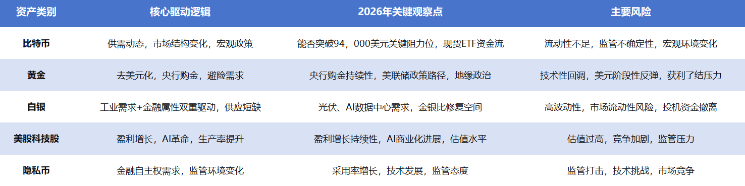 W obliczu złożonych wyników różnych klas aktywów inwestorzy muszą zbudować jasny logiczny framework, aby poradzić sobie z rynkiem w 2026 roku. Różne klasy aktywów są wspierane przez różne podstawowe logiki i czynniki napędowe.