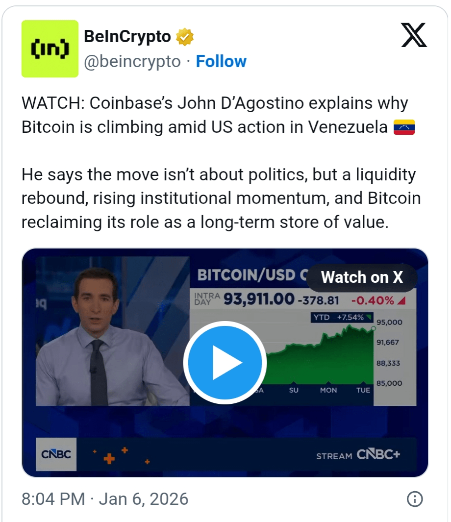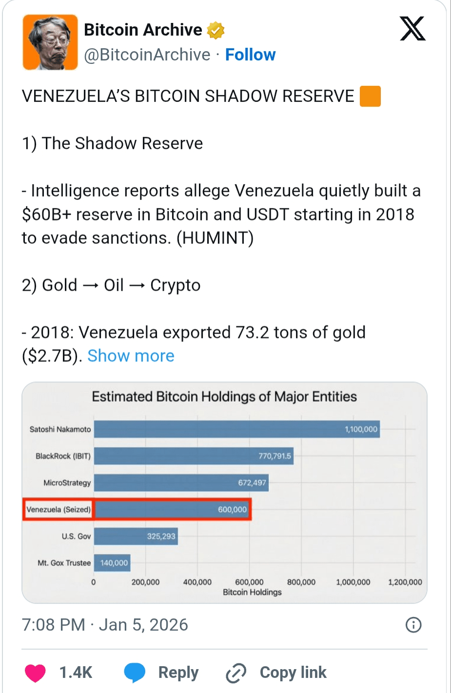 Spekulacje dotyczące wyimaginowanych złotych rezerw bitcoina w Wenezueli wzrosły po tym, jak siły amerykańskie aresztowały prezydenta Nicolása Madura i przewiezły go do Stanów Zjednoczonych.