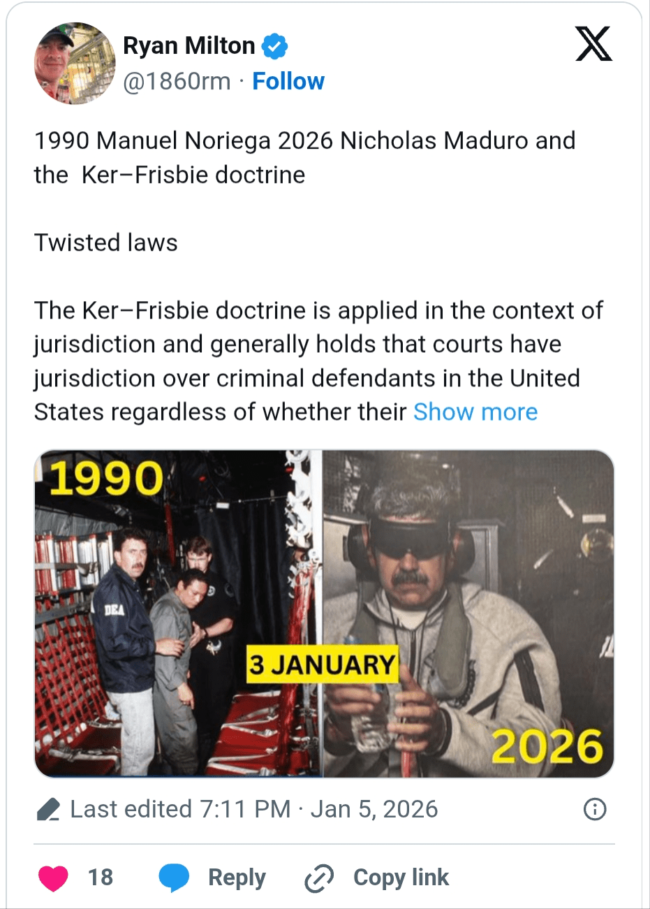 Długotrwała zasada Ker–Frisbie pozwala na sądy nawet wtedy, gdy oskarżony został przewieziony niezgodnie z procedurą.