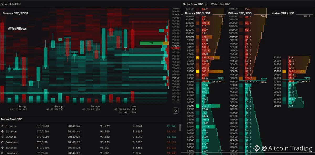 Откат случился после неудачной попытки пробиться выше диапазона $94 000–$95 000 — данные по стаканам показали, что на крупных биржах в этом коридоре сосредоточено почти $100 млн в заявках на продажу.