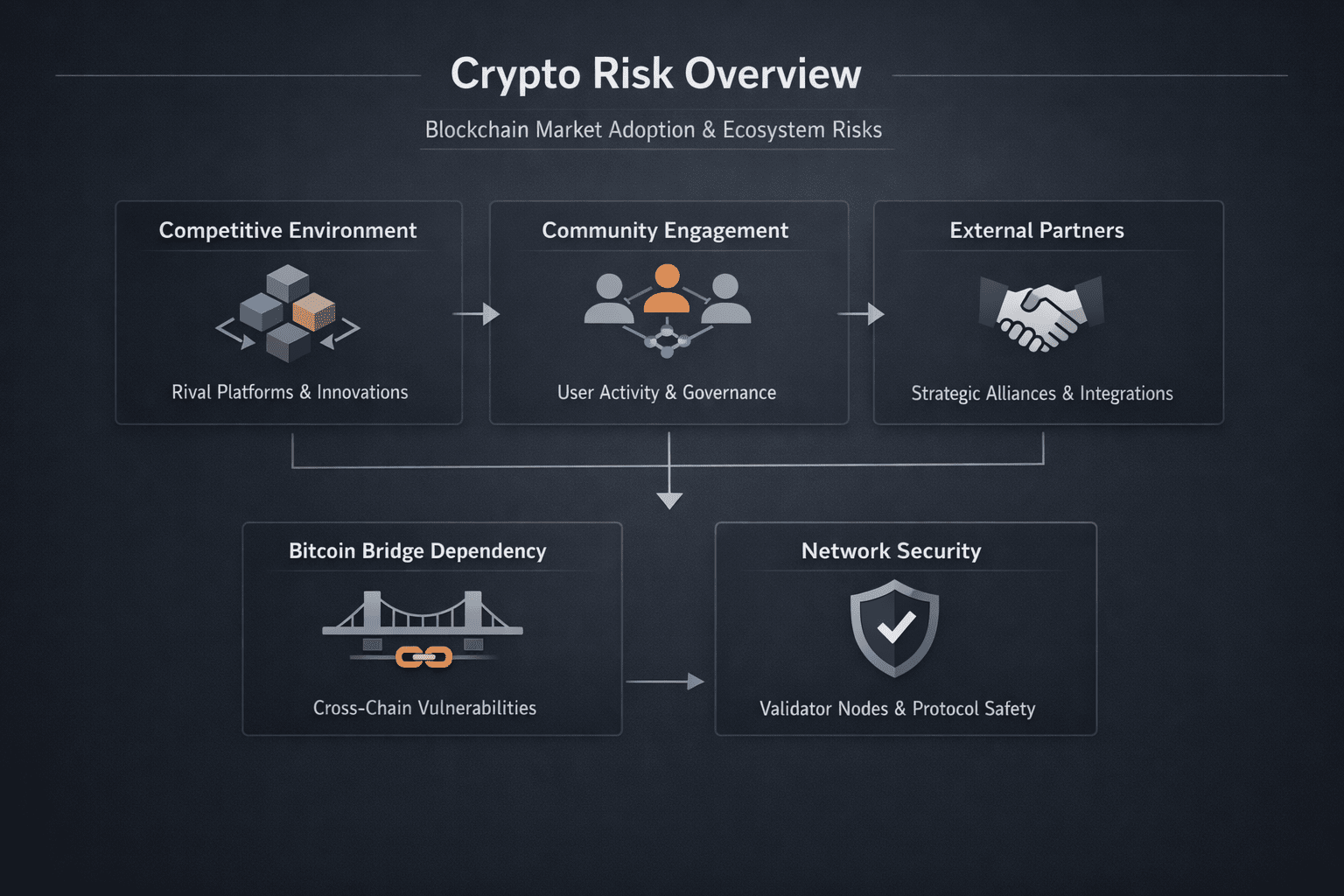Jeśli sieć nie przyciągnie ani nie utrzyma zaangażowanej społeczności, wzrost może zwolnić. Niskie uczestnictwo walidatorów może wpłynąć na bezpieczeństwo i żywotność sieci, podczas gdy ograniczona aktywność deweloperów może zmniejszyć innowacyjność i rozwój ekosystemu.