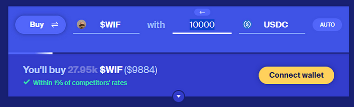 Jupiter agreguje większość wolumenu transakcji na platformie Solana, częściowo z powodu problemów z interfejsem użytkownika. Najbardziej płynnym DEXem na Solanie jest Orca, którego płynność wynosi 190 milionów dolarów. Następny jest Raydium, z wyjątkiem własnego tokena protokołu RAY, Orca ma większą płynność niż Raydium w innych tokenach głównego nurtu. Jednakże wolumen obrotu Orki jest często niższy niż w przypadku Raydium (wolumen obrotu Orki pochodzi głównie z agregacji Jowisza). Interfejs handlowy Orca nie jest konwencjonalnym interfejsem operacyjnym przypominającym Uniswap. Zamiast tego możesz wybrać opcję kupna/sprzedaży, a następnie wprowadzić ilość, co nie jest zgodne z przyzwyczajeniami operacyjnymi użytkowników. Po drugie, WIF nie dołączył do białej listy Orca (musisz to zrobić wpisz adres umowy, aby wyszukać). Chociaż Orca może zaspokoić potrzeby użytkowników dotyczące transakcji na niewielkie kwoty, doświadczenie handlowe jest znacznie gorsze niż w przypadku Jupitera.
