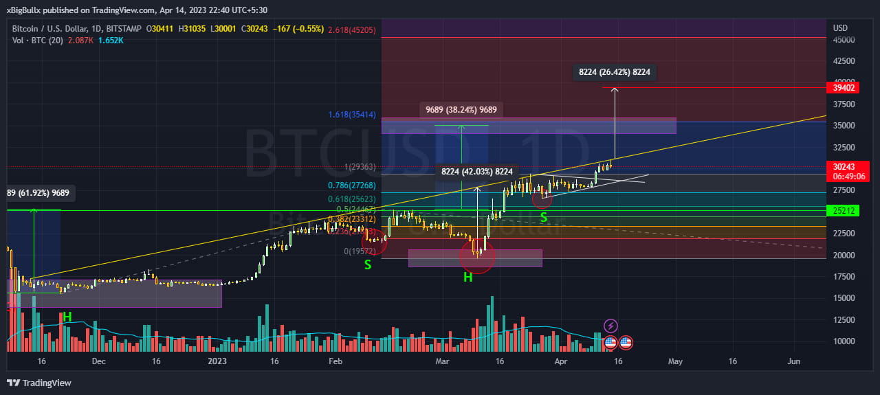 Dlatego powiedziałem, że Bitcoin może osiągnąć 39,4 tys. dolarów, jeśli w dziennym przedziale czasowym wybije się z odwróconej głowy i ramion.