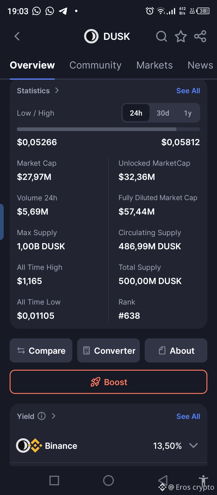 The $DUSK network infrastructure directly ties token utility to network fees and staking rewards. DuskDS ensures data availability and settlement, while DuskEVM handles the application layer.