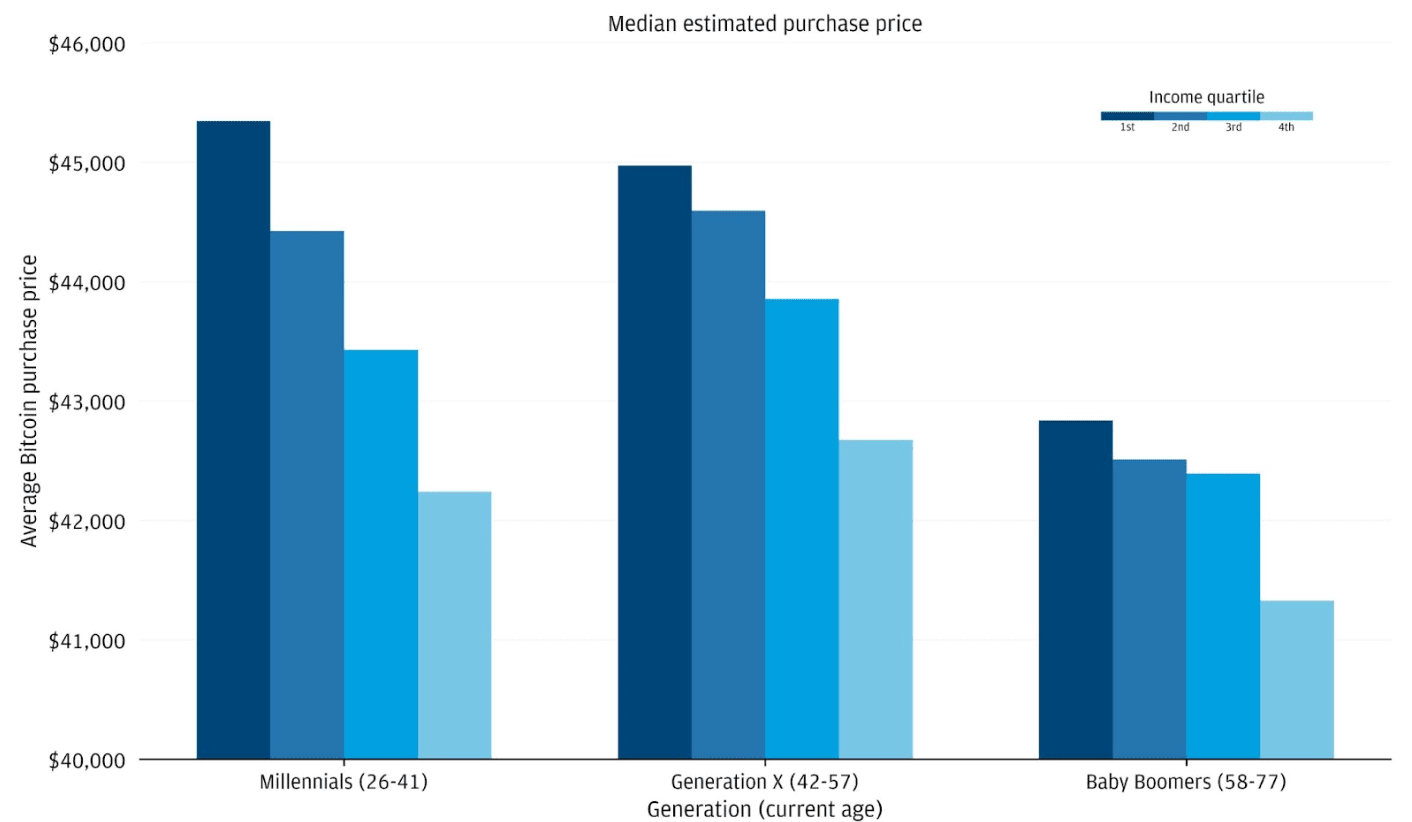 Prețul mediu de cumpărare Bitcoin în funcție de generație și nivel de venit:
