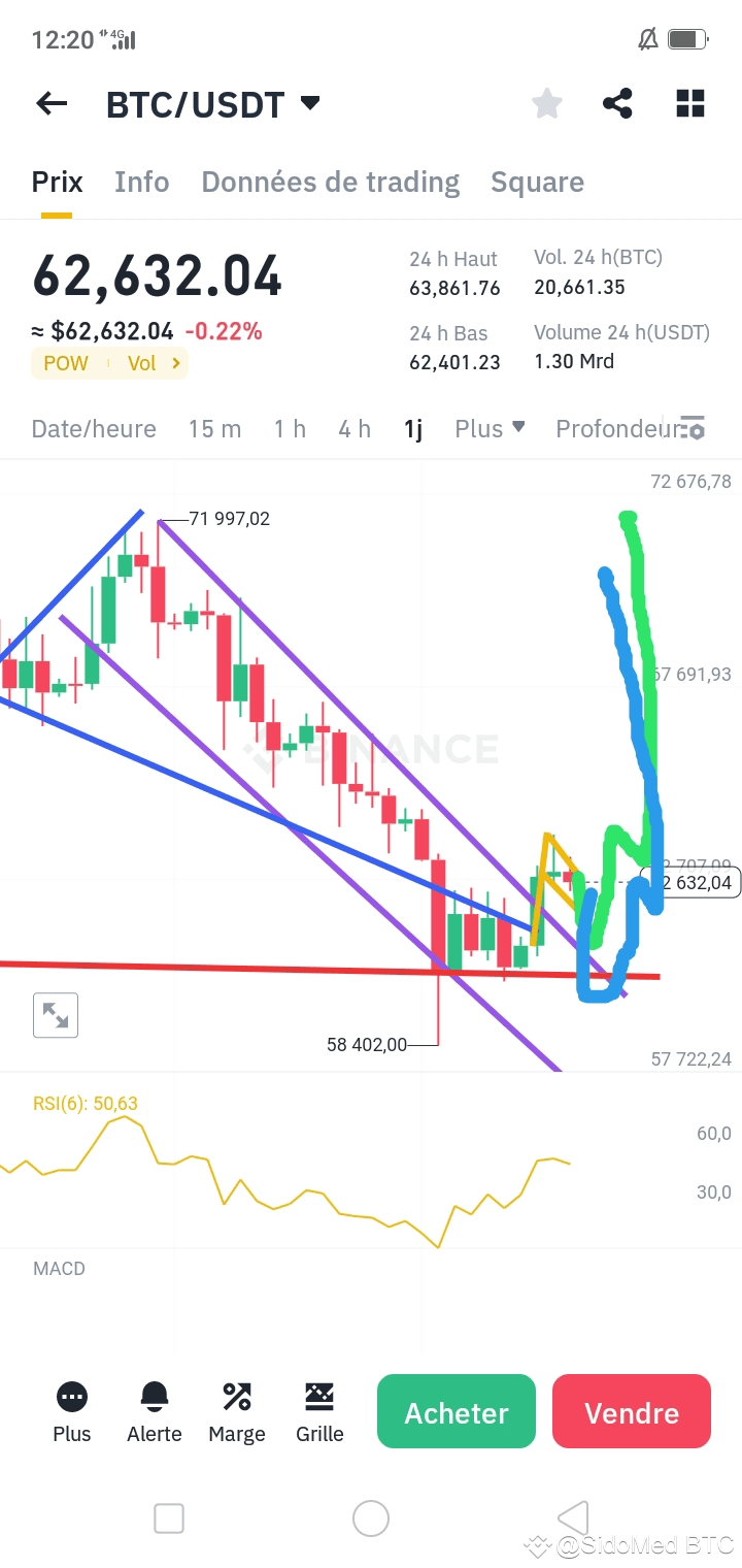 ..//أيضا تأكيد كسر القناة يستدعي نزول البيتكوين إلى مستوى 61,500$ على الأكثر ثم الصعود مباشرة وبسرعة باتجاه مستويات 65,000$، لذلك ارسموا الخط الأحمر وتابعوه جيدا وباستمرار، وبالمناسبة الخط الأحمر يمثل المستويات ما بين 58,000$ وصولا إلى 60,000$…
