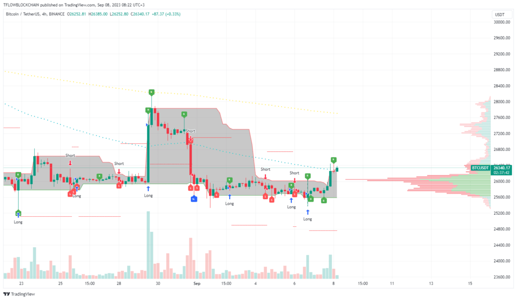 Bun venit tuturor la Monitorul pieței de astăzi pentru 8 septembrie 2023. Împreună analizăm un portofoliu de 10 criptomonede și tranzacționăm în direct pe platforma Binance Futures. Folosim motorul de tranzacționare TFLOW pe graficul 4H. Valoarea totală a pieței este de 1,04 mil USD, volumul zilnic este de 26,7 miliarde USD, dominanța BTC este de 48,2%, iar Indicele Frica și Lăcomia este de 46.