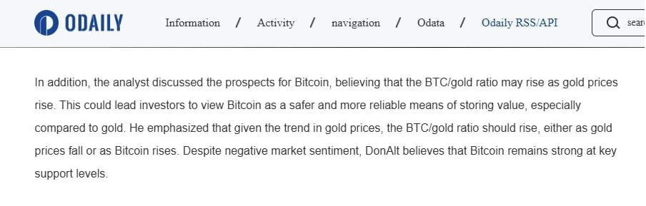 ⢠ODAILY Planet News raporteazÄ cÄ analistul de criptomonede DonAlt Či-a Ć®mpÄrtÄČit perspectivele pe X referitor la viitorul Bitcoin-ului. El a sugerat cÄ, pe mÄsurÄ ce preČurile aurului cresc, raportul BTC/aur ar putea sÄ creascÄ Či el. AceastÄ schimbare ar putea Ć®ncuraja investitorii sÄ vadÄ Bitcoin-ul ca pe un depozit de valoare mai sigur Či mai de Ć®ncredere Ć®n comparaČie cu aurul.š°