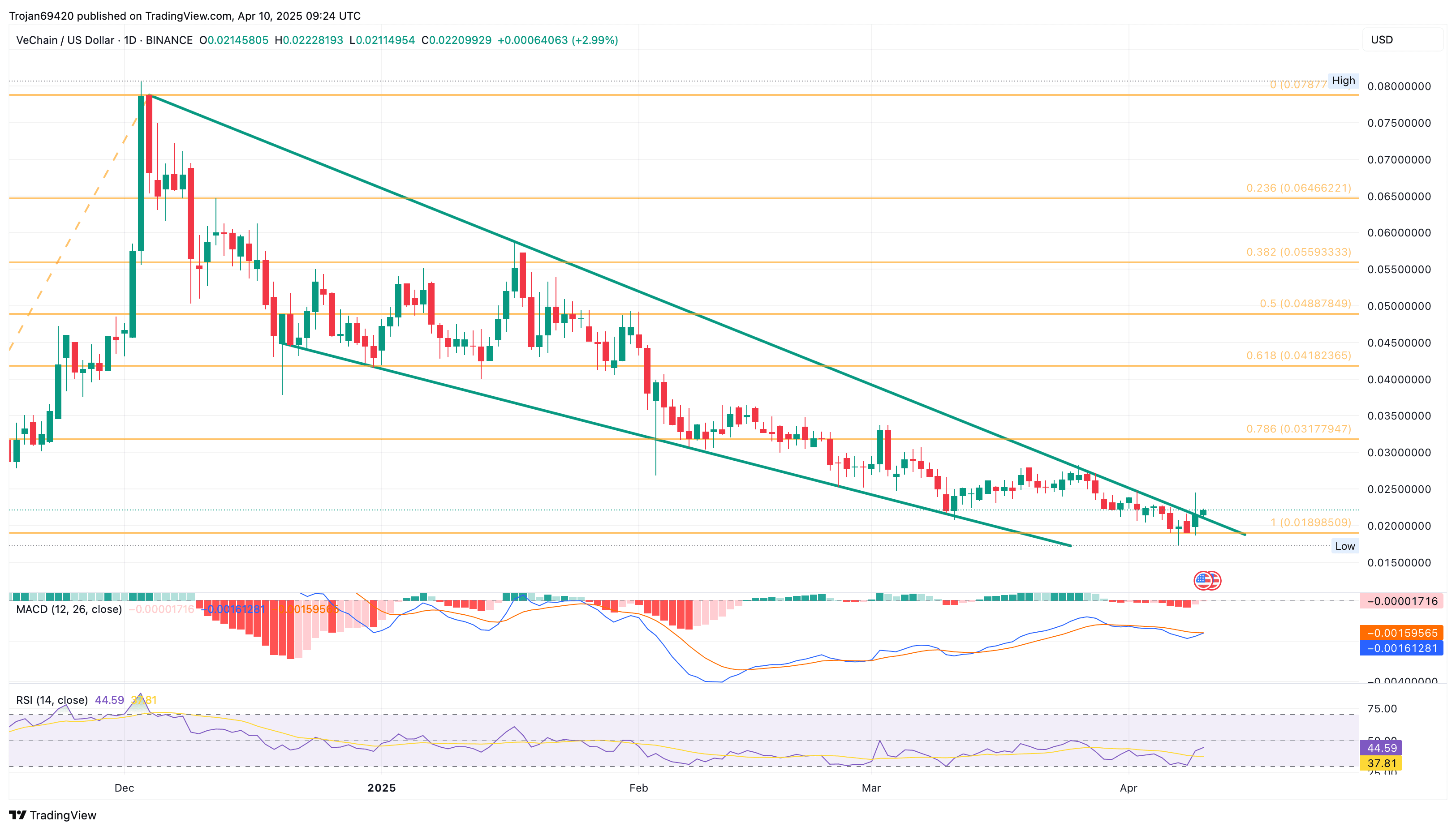 VeChain crește peste 0,025 $ pe măsură ce iese dintr-un model de triunghi descendent. Ar putea acest impuls optimist să împingă prețul spre ținta de 0,050 $?