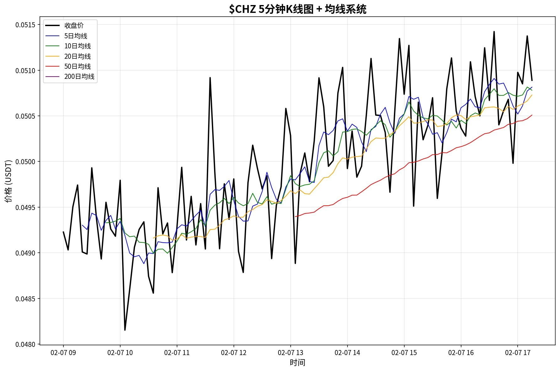 均线排列:5日>10日>20日>价格>50日>200日,多头排列