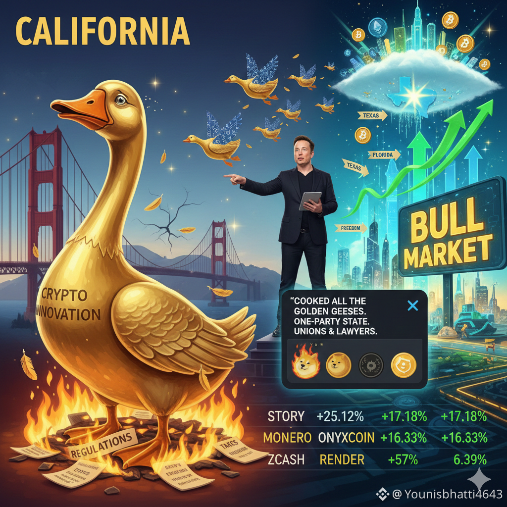 This truth, drawn directly from Musk's own words, resonates profoundly in the cryptocurrency sector, where California's stringent regulations are accelerating an exodus of innovators and capital, mirroring the "cooking" of its golden geese. Musk himself has long criticized California's overregulation and high taxes, relocating Tesla's headquarters to Texas in 2021 and citing similar issues. In the crypto space, this dynamic is evident: California's Digital Financial Assets Law (DFAL), set to fully enforce licensing requirements by July 1, 2026, has already prompted enforcement actions against non-compliant firms, including desist orders for crypto ATM operators violating fee and transaction rules. Additionally, the state's 2023 ban on retail crypto staking—still in effect despite Coinbase's "Bring Back Staking in CA" campaign—has reportedly cost Californians over $110 million in lost rewards, as per Coinbase estimates.