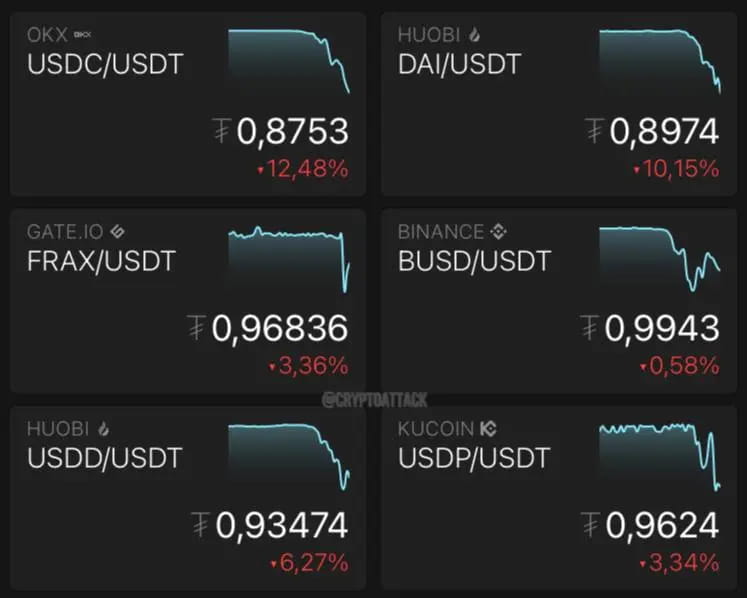A început fluxul de lichidități. Situația a creat negativitate puternică în jurul altor monede stabile. Principiul domino a funcționat. O parte semnificativă a garanțiilor lor provenea de la USDC. De exemplu, #DAI cu 48% a fost asigurat de USDC.