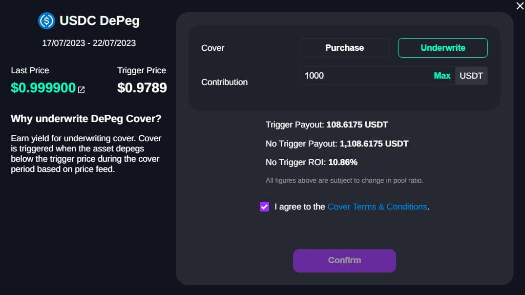 Și datorită noului produs TNT Vault, acum este posibil să acționezi ca un subscriitor în acoperirea riscurilor asociate cu depeg-ul stablecoin. Profitul pentru câteva zile poate ajunge la peste 10%, așa cum s-a întâmplat recent. Nu trebuie uitat faptul că subscriitorul își asumă riscurile în cazul unui depeg și al unui preț de declanșare.