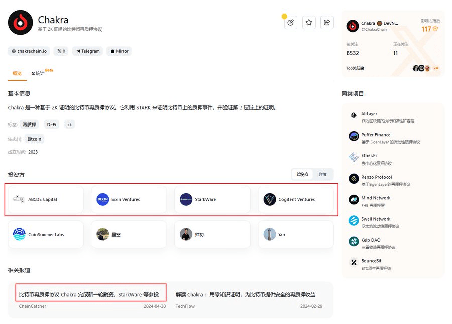 Chakra este un protocol de re-gajare Bitcoin bazat pe STARK ZK și a primit finanțare de la StarkWare, Bixin etc.