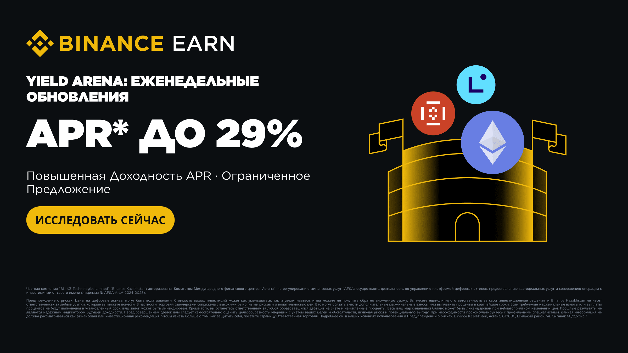 Настоящее сообщение является рекламой финансовых услуг и опубликовано компанией BN KZ Technologies Limited (“Binance Kazakhstan”), уполномоченной Комитетом Международного финансового центра «Астана» по регулированию финансовых услуг (AFSA) осуществлять деятельность по управлению платформой для торговли цифровыми активами, предоставлению услуг хранения и совершению сделок с инвестициями от своего имени (лицензия № AFSA-A-LA-2024-0028). Полный текст сообщения доступен по ссылке {добавить ссылку на весь текст FP}