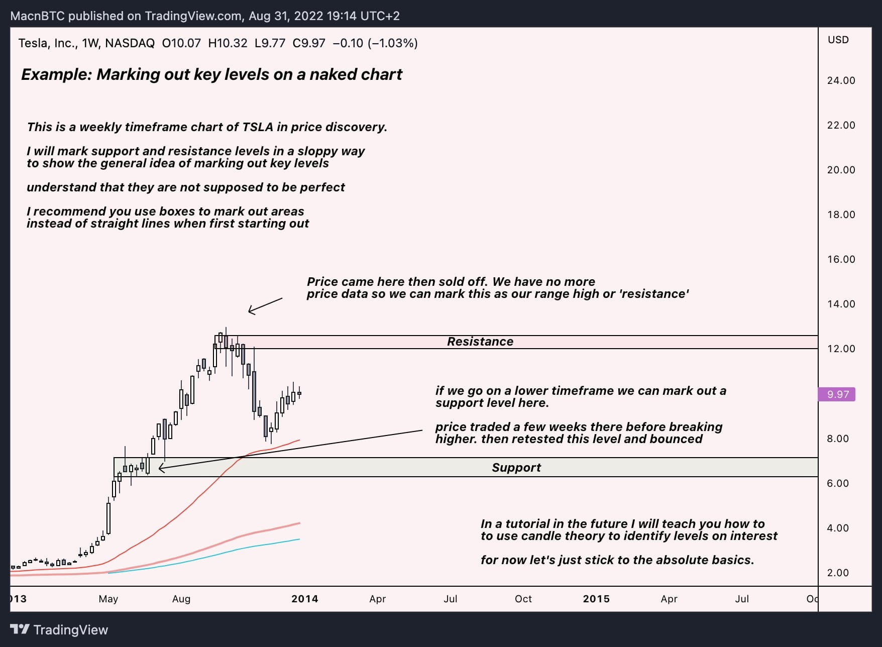 Как обозначить на графике ключевые интересующие уровни (часть 1) Размечая уровни, помните, что они не должны быть идеальными. Я рекомендую начинать разметку уровней с помощью прямоугольников, а не линий. $TLSA на таймфрейме 1W!