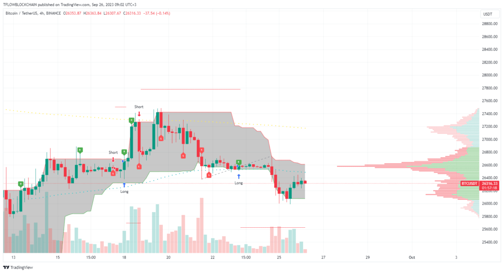 Приветствуем всех на сегодняшнем обзоре рынка от 26 сентября 2023 года. Вместе мы управляем портфелем из 10 криптовалют и торгуем в реальном времени на платформе Binance Futures. Мы используем торговый механизм TFLOW на 4-часовом графике. Общая рыночная капитализация составляет 1,04 триллиона долларов США, дневной объем — 23,53 миллиарда долларов США, доминирование BTC — 48,9%, а индекс страха и жадности — 46.