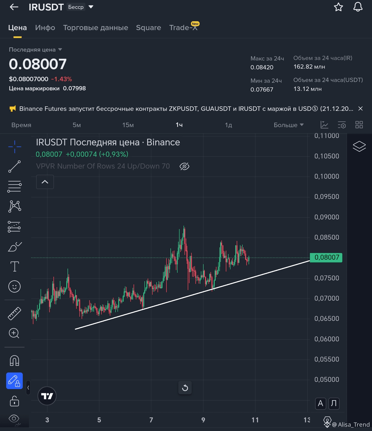 ​Будьте осторожны, монета молодая и очень волатильная ❗❗❗ Ставьте уведомления и не забывайте про стопы ❗❗❗