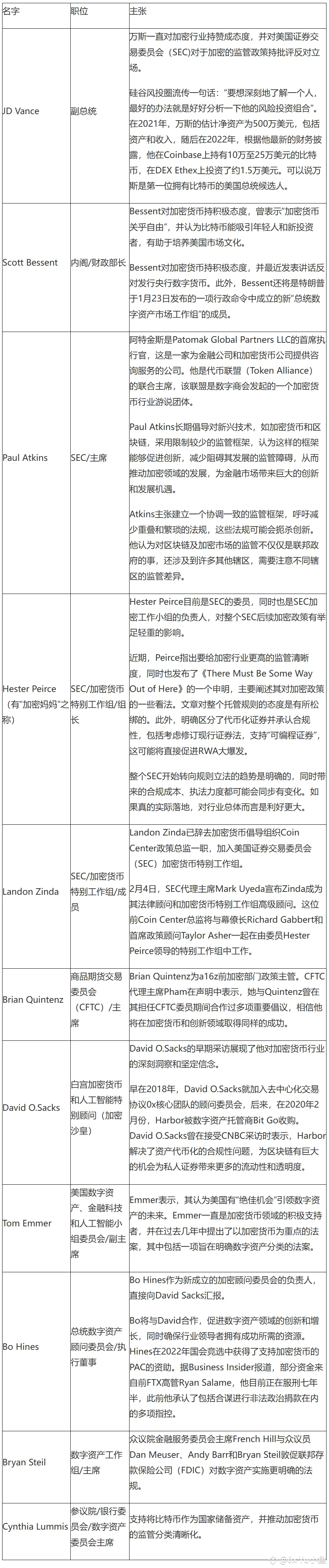 以下是Trump上任以来任命加密相关官员一览:
