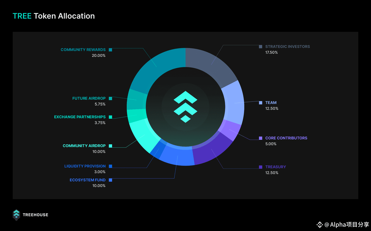 融资策略:获得YZi Labs、Mirana Ventures、Wintermute、Bitpanda、Jump Capital 等顶级投资者的青睐,总融资高达1800w,估值4亿。采用渐进式代币释放模式,生态基金中45%以TREE代币形式分配,设置48个月解锁周期