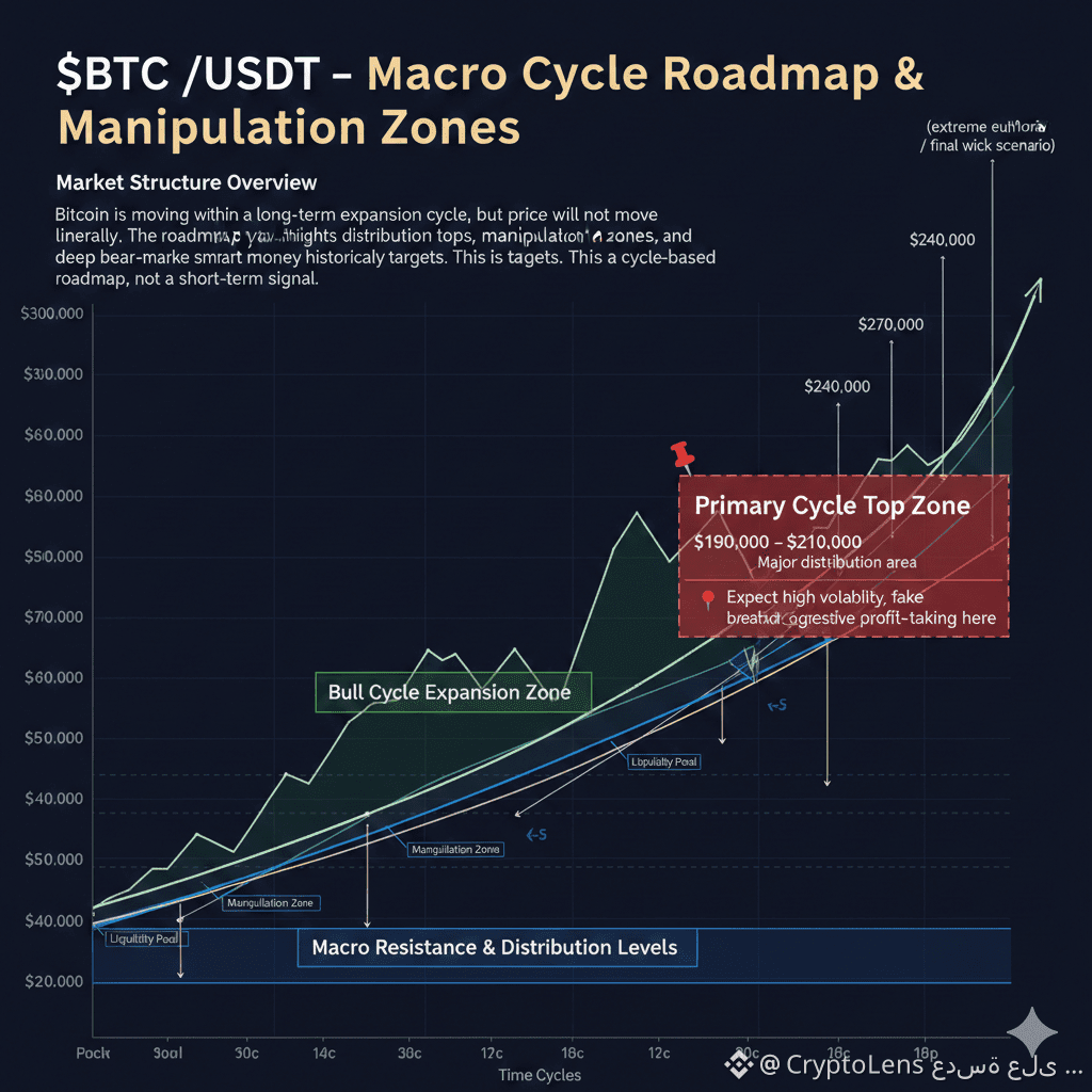 البيتكوين الآن في دورة توسعية طويلة المدى، لكنها ليست نزهة! هناك مناطق تلاعب، وأماكن مليئة بالسيولة التي تنتظر من يخطئ، لتتغير اللعبة فجأة. هذه ليست إشارات تداول عابرة، بل خارطة طريق لكيفية تحرك العملاق.