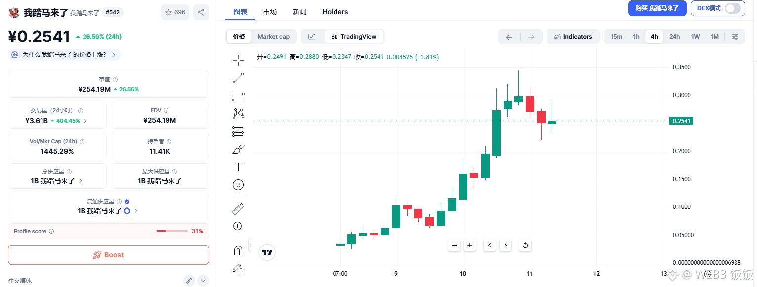 BNB 的投资覆盖了四种模因币,每种投入 5 万美元,包括币安、哈基人生米、我踏马来了和老子。其中一些币种在短时间内已经出现了正向反应,例如币安人生米在 24 小时内上涨超过 26%,这不仅提升了项目的信誉,也让市场对模因币的关注度进一步升温。