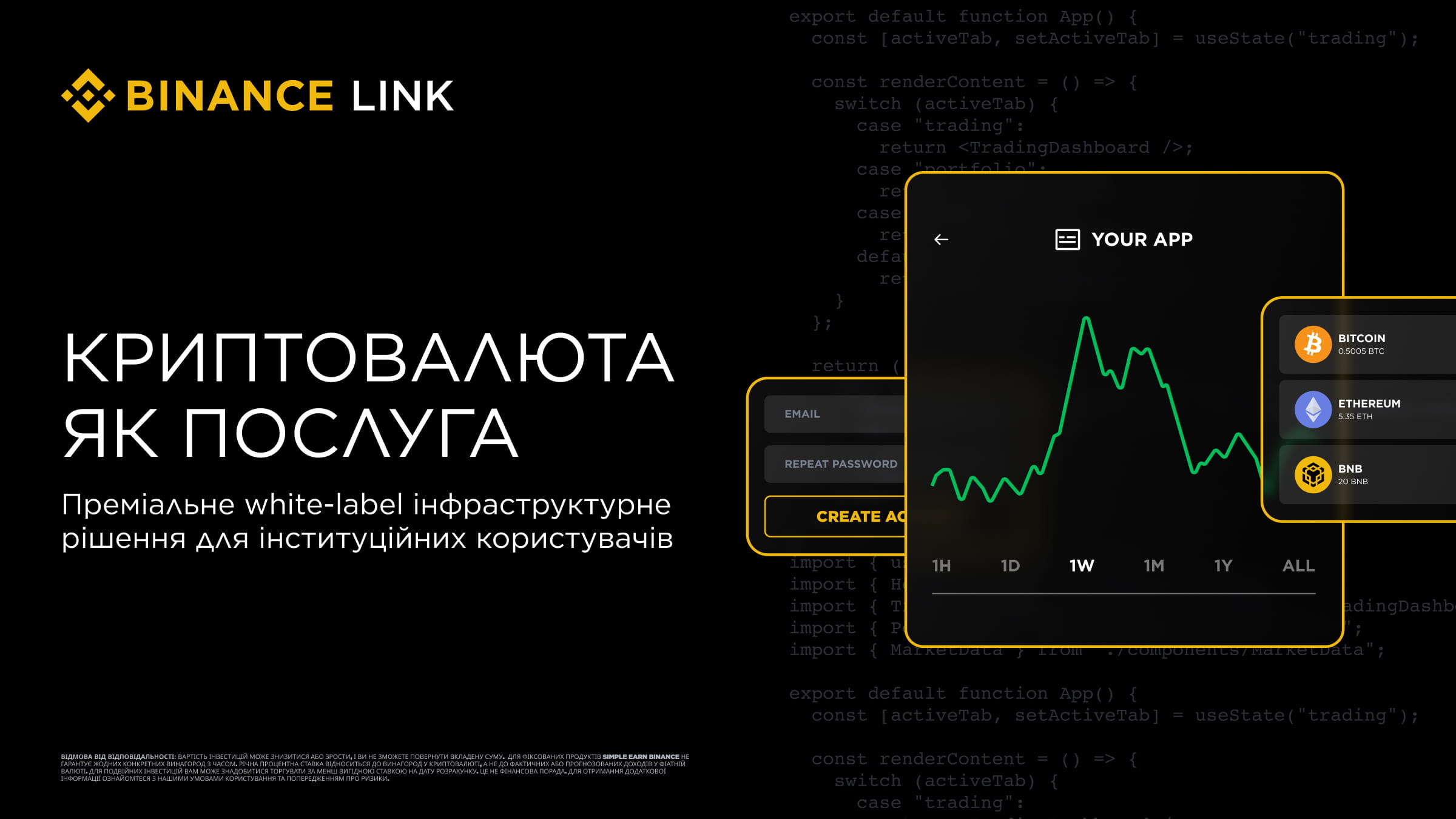 Організації зберігають повний контроль над фронтендом — своїм брендом, відносинами з клієнтами та досвідом користування — тоді як Binance забезпечує роботу бекенду: підтримку торгівлі, ліквідності, зберігання, відповідності та розрахунків.