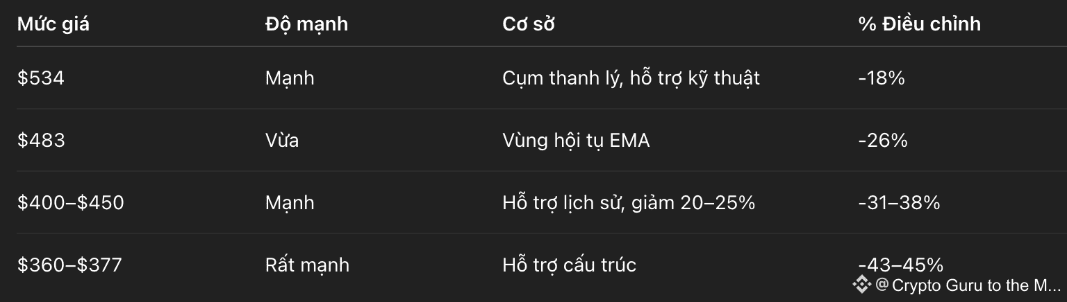 • Vùng mục tiêu: $483–$534 (giảm 18%–26%)