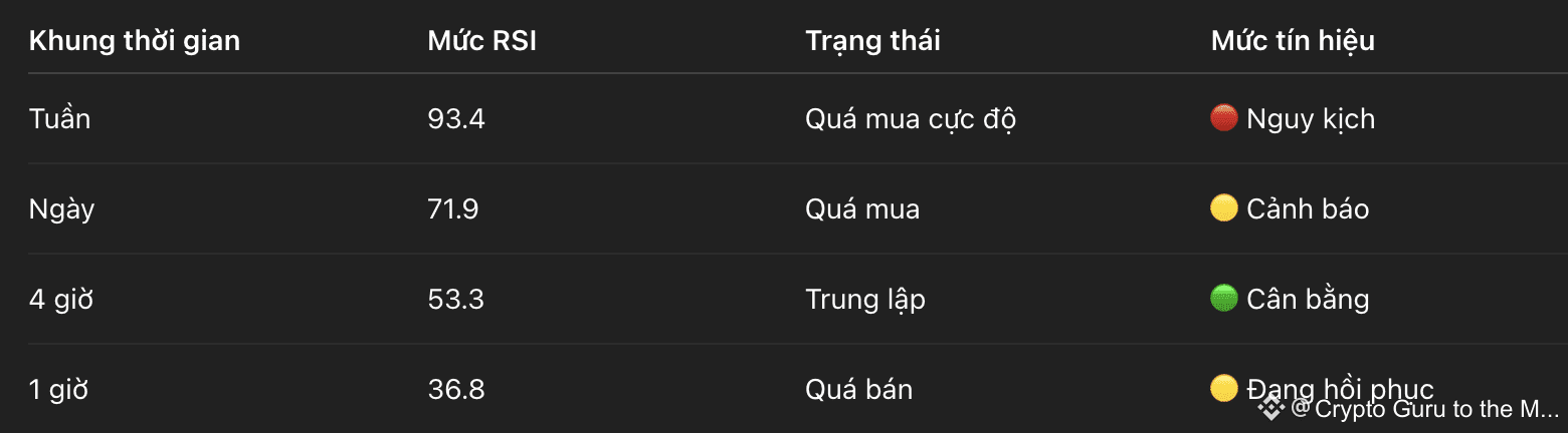 • RSI khung tuần ở mức 93.4 — quá cao để duy trì lâu dài.