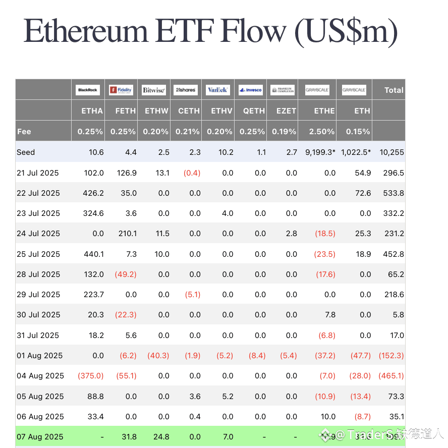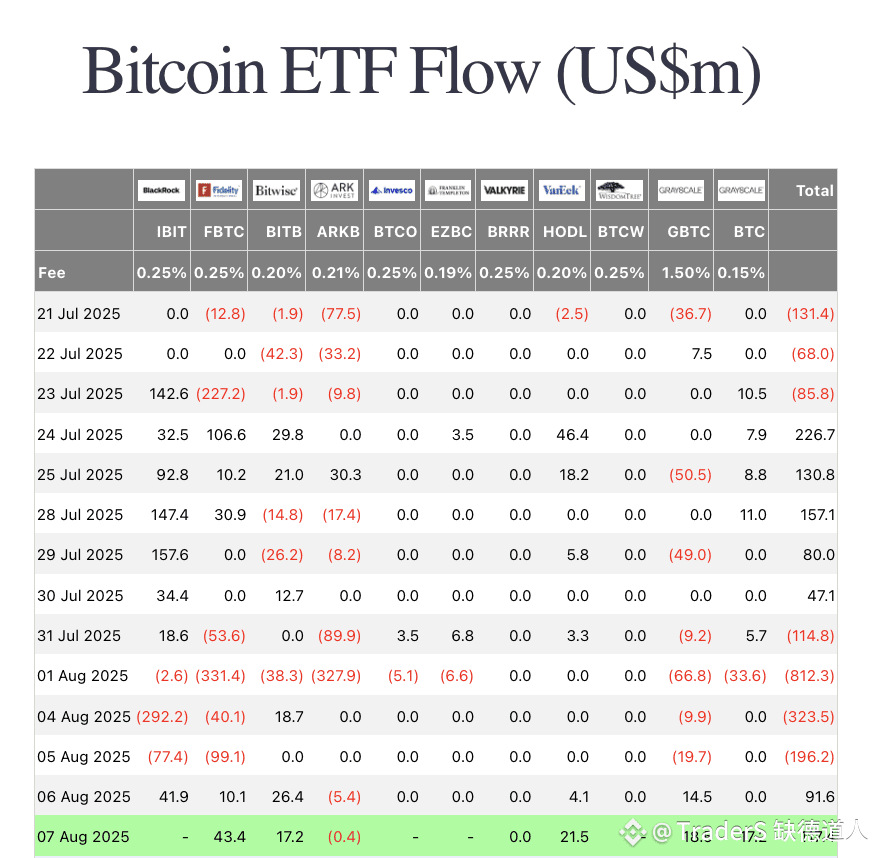 3、ETF数据 8月7日 在没有贝莱德数据的情况下,BTC ETF流入1.17亿 ,ETH ETF流入1.09亿