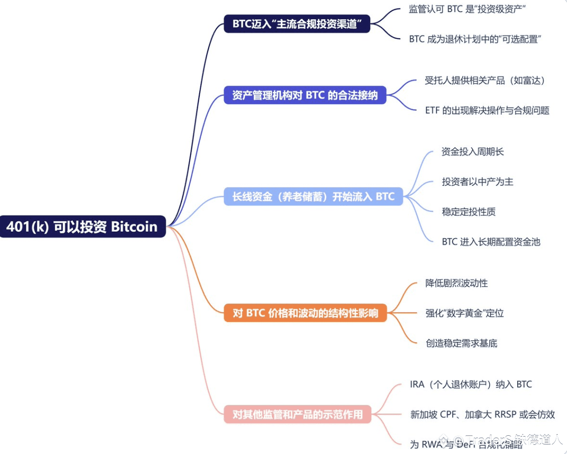 2、川子已签署行政令,允许 401(k) 计划配置包括 Bitcoin 在内的数字资产,这类投资预计将主要通过现货 ETF 等合规产品实现