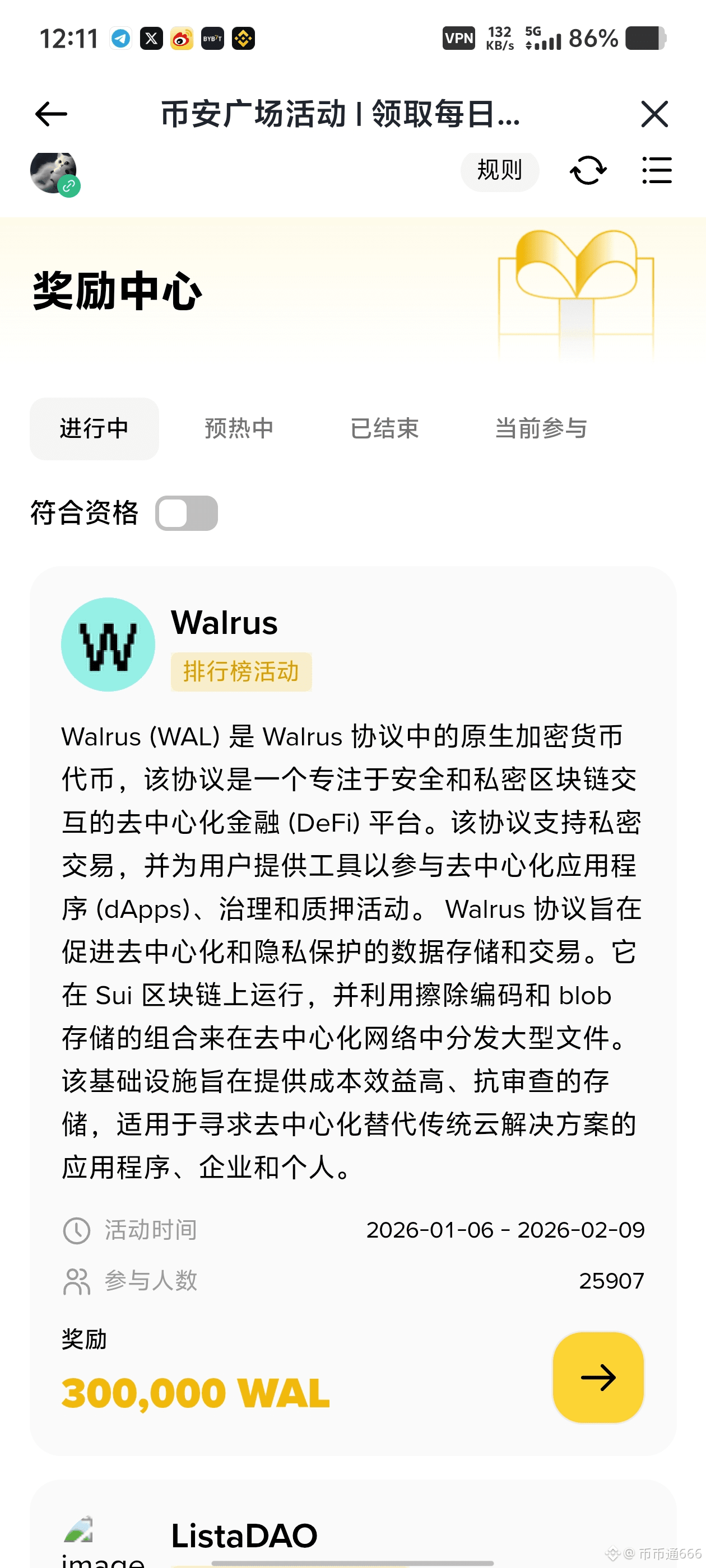 可以看到现在有三个任务,假如你好运挤进了前100,还是可以获得不错的奖励的,示范一下: